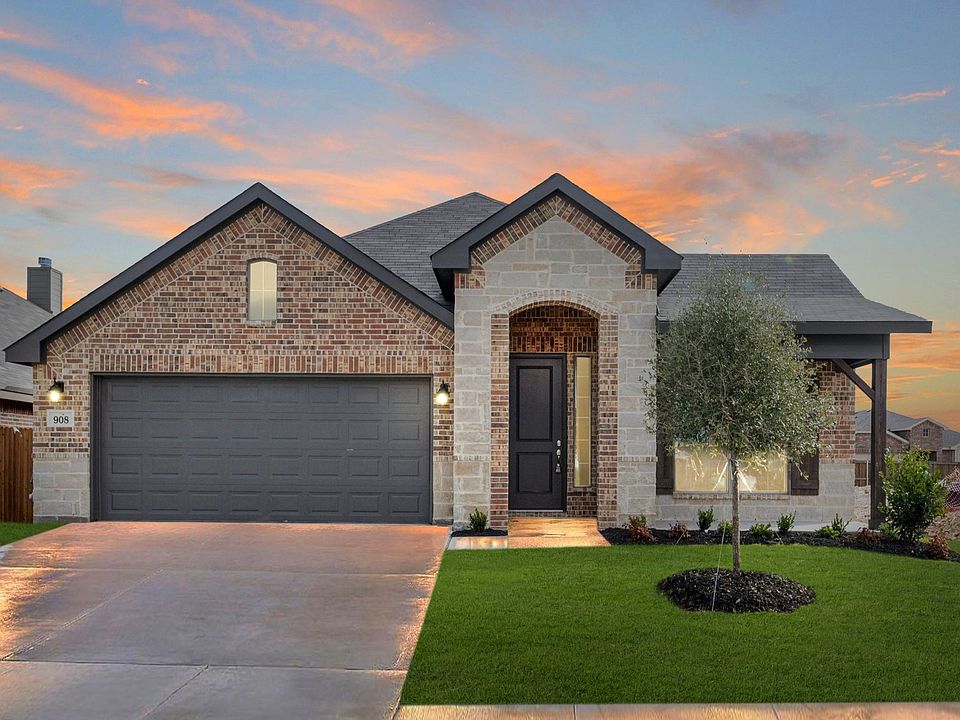 A gorgeous one-story 3-bedroom home includes a formal dining room at the entrance and a double-door study which is conveniently located next to the master in the back of the house. No matter your style, this flexible floorplan is easy to make uniquely your own.This expansive kitchen features a window over the sink, a large center island with bar seating, quartz countertops, a walk-in pantry, stainless steel appliance, beautiful warm gray cabinets, and an abundance of storage. In true transitional style, the kitchen is open to the breakfast nook with a built-in seat and a large window that allows plenty of natural light to fill the room.This family room is the perfect place to kick back and relax after a long day! The wood-look tile flooring creates a cozy atmosphere, while the tile surrounding the fireplace adds a modern vibe. Whether you want to enjoy the stunning views of your backyard or just watch the sunrise or sunset, you'll be sure to love this space.A luxurious master suite enjoys the view over the yard from the built-in window seat. Relax in style in the beautiful master bathroom with twin sinks, a soaking tub, a walk-in shower with a seat, and a large walk-in closet.Two additional bedrooms are located in their own wing and have plenty of storage to keep everything organized with a pair of linen closets. On the other side of the hallway, you'll find the full bathroom, just steps away from a designated utility room - perfect for keeping extra supplies or cleaning prod