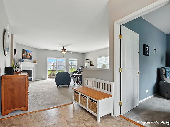 Welcome to this stunning, spacious ranch home located in the desirable 55+ community of Patriot Estates. With approximately 2,400 square feet of finished space, plus an additional 1,000 square feet of unfinished potential, this home offers a perfect blend of comfort and opportunity. This home features 2 bedrooms, an office or den that could serve as a third bedroom, and 2.5 bathrooms. A convenient 2-car side load garage provides ample space for vehicles and storage. Enjoy modern amenities such as a NEW A/C system installed in June 2025, and a NEW furnace January 2025. The driveway was replaced and widened in 2024, and a luxurious walk-in jet tub was added in 2023. The tankless hot water heater is only 3 years old, ensuring energy-efficient hot water on demand. The roof was replaced in 2021, providing peace of mind for years to come. The finished basement includes a recreation room complete with a wet bar and a half bath, a huge workshop, and plenty of storage space with included shelving. Additionally, there's a dedicated workout room equipped with a commercial-grade treadmill. The kitchen is a chef's dream with granite countertops, a stylish backsplash, and a reverse osmosis system for pristine drinking water. The professionally landscaped exterior features a huge wrapping brick paver patio, complete with a charming fountain feature, perfect for relaxation and entertaining. Conveniently located just 3 minutes from McHenry Northwestern hospital, 10 minutes from the vibrant downtown McHenry, and 10 minutes to downtown Crystal Lake, this home offers the perfect blend of tranquility and accessibility. Don't miss the opportunity to make this exceptional property your own! Listing agent related to seller.