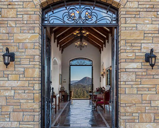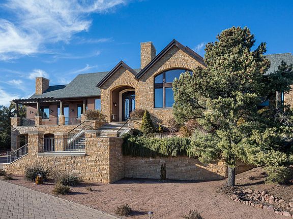 THE CROWN GEM OF CHAPARRAL PINES This European inspired masterpiece is located at the highest point of Chaparral Pines on a magnificent 1.32 acre lot with panoramic mountain views in every direction! Acclaimed architect, Allan Page, designed this grand Arizona Sandstone clad home to blend harmoniously with the trees and granite boulders native to the area. There is no need for artwork as the windows of each room are works of art all on their own -- capturing the ever-changing views of the suns reflection on the surrounding mountains. The European flair flows consistently throughout this over 6000 square foot, 3 bedroom/5 bath home with the natural stone flooring, trayed ceilings, arched room entries, wood paneled walls, wood beamed ceilings, wrought iron doors, private balconies from almost every room and the rich mahogany bar with 800-bottle wine room. Not to mention, the four old world styled fireplaces which grace the master suite, Great Room, Library/Den, as well as the outdoor mountain-view inspiring loggia. The radiant heat through provides a consistent warmth to keep the house cozy even on the coldest day. For homeowner ease, there is an elevator to whisk you from the 3-car garage on the lower to the upstairs living. The level of finishes and attention to detail are unsurpassed. If you desire the finest of mountain living, this is your home, come see it now!