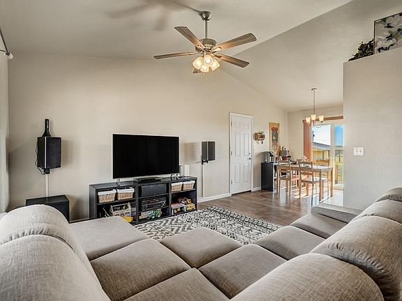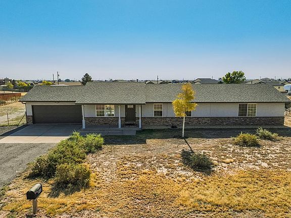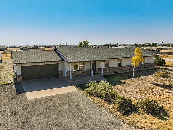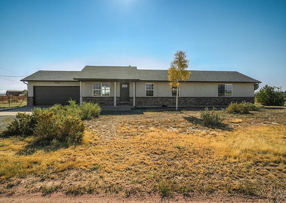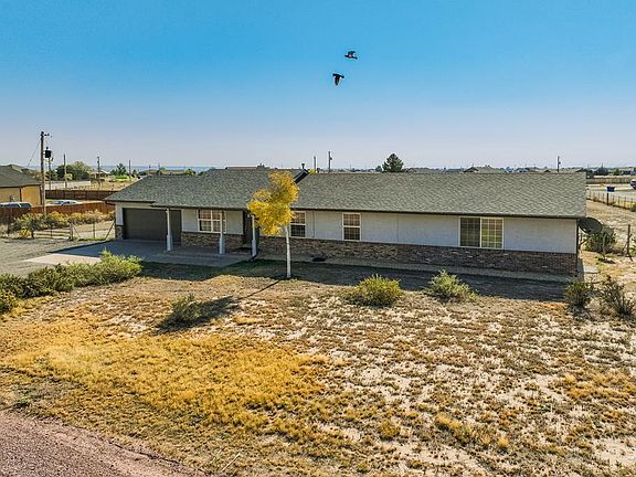 Welcome Home to this Pueblo West beauty on over 1 acre of fenced in land! Enter the front door into the spacious, open Living Room with vaulted ceilings.. Directly connected is the Dining Room, which leads into the beautiful galley Kitchen featuring pleasing white cabinets, gorgeous granite countertops, and stainless steel appliances.. Behind the next door? The Laundry Room, conveniently located on the main level, with included Washer and Dryer and space for cleaning supply storage.. Heading down the sprawling hallway, you'll first come to a spacious office or den with beautiful french doors.. 2 large secondary bedrooms give plenty of space for the family or guests, with access to a Full Bathroom from the hallway.. The large Master Bedroom features an attached Full Bathroom and access to the backyard.. End of the hallway features a massive bonus room that can be used as a Family Room, Playroom, or whatever you can imagine!.. Head down the stairs to the unfinished basement with endless potential and tons of storage space.. The 1.38 acres are fully fenced in to enjoy your outdoor space however you'd like.. Sit out on the beautiful concrete patio off the back door and enjoy your views.. Got cars and toys? Don't forget the 2 car attached garage AND the 30x32 ft. detached garage that can hold multiple cars, other vehicles, and has. over 20 feet of built in workbench.. This home has it all, so schedule your showing today!
