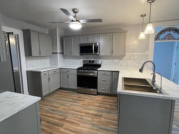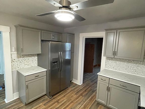 Newly remodeled home on 2 lots. Features include stylish kitchen cabinety with plenty of countertop space, tiled back-splash and all new appliances. Spacious bathroom with tub-shower combo, lovely tiled shower surround. Vinyl plank flooring throughout home. Dining room, Laundry on main level - includes new washer and dryer. Abundance of closet space, covered front porch with ceiling fan. Storage building. Reverse osmosis system.