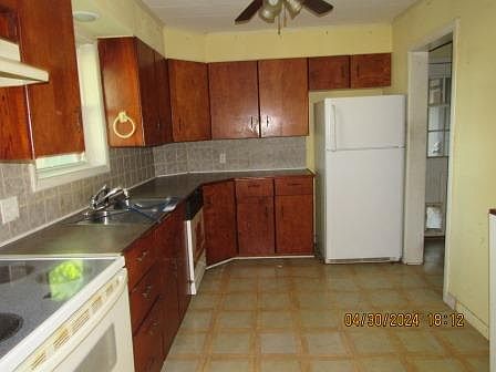 Ranch style home on level lot in small rural town. Home features Living Room, dining area, kitchen, laundry room, three bedrooms, two baths, double garage, shed, and fenced backyard.