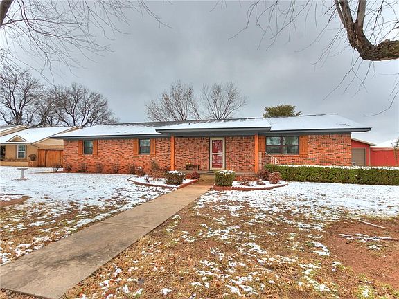 Gorgeous 3 bed, 2 bath brick home that has been beautifully updated in the past two years, including updated kitchen, white cabinets, countertops, and a wonderful kitchen island. Improvements include new windows, new roof and new central heat and air. Located in a peaceful neighborhood on the edge of town, it boarders a alfalfa field making it feel like you are in the country. The backyard is completely fenced for your pets and has fruit trees and a lot of shade. There is a one car garage, with multiple out buildings for storage or even a man cave or she shed if desired. There is also a walk-in storm shelter. Call today to schedule your showing.