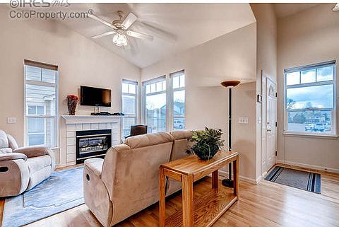 Gorgeous Mountain Views from this End unit tucked away on the end of a culdesac! Main level master bedroom, walkin closet, laundry & full bath. Hardwood floors throughout living/dining/kitchen/entry/laundry & powder bath on main level. Bright & open floor plan w/ vaulted ceilings & fireplace. Full unfinished basement for future expansion. Large bedrooms & additional loft/study/flex area. Fenced backyard & pets welcome!Low Maintenance with HOA covering the exterior, snow, lawn etc.