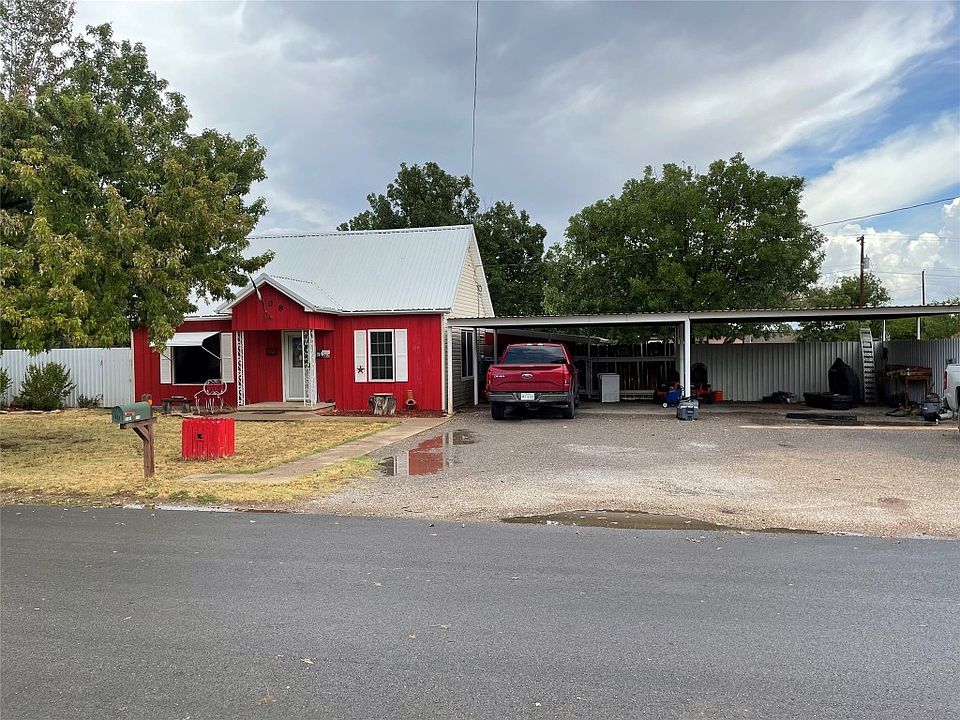 Rustic, smaller home on large lots in great neighborhood. New asphalt street makes for pleasant access into one of three covered carport slots. Beautiful adobe style wood burning fireplace in the living room, large bedrooms, and newly remodeled bath. Kitchen has been completely redone and was opened into the dining room. Large utility room with access to back covered patio. Metal six foot fence for privacy in the huge backyard, workshop with electricity, RV covered parking with 30 amp connection, sewer, and water connections, and metal storage building. Excellent starter home or for someone looking to downsize.