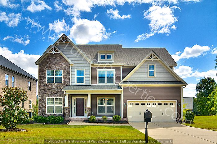 Awesome 5 bedroom, 3 full bath home in the Ashland at Lake Carolina neighborhood in Northeast Columbia. Sits at the end of a cul-de-sac street near community guest parking. Stacked stone and Craftsman-style exterior details, covered front porch, & carriage-style door 2-car garage. Fully fenced backyard with wood deck. Beautiful dark hardwood floors and heavy molding throughout downstairs, granite counter tops in the kitchen and baths. Off the foyer, formal dining room has coffered ceiling and wainscoting, with an arched wall pass-thru in the formal living room. Spacious open-plan family room with a wall of windows, ceiling fan, and gas log fireplace. Sun-filled breakfast area overlooking the deck and backyard opens to kitchen bar seating. Kitchen boasts custom cabinets, tile backsplash, recessed lighting, and pantry. Smooth-top stove, above-range microwave, dishwasher, and French-door refrigerator included. Guest bedroom or office with adjacent full bathroom also downstairs. Wrought iron spindles and wood treads on the stairs to second level. Master suite has trey ceilings, sitting room, and master bath w/ double sinks, garden tub, shower, and walk-in closet. Three additional bedrooms, 3rd full bath, and laundry room w/ utility sink off the hall. Walk to Jeep-Rogers YMCA, easy access to I-77, I-20, Ft Jackson, and Sandhills Shopping. Richland 2 schools. This property allows self guided viewing without an appointment. Contact for details.