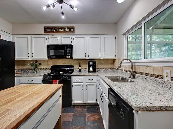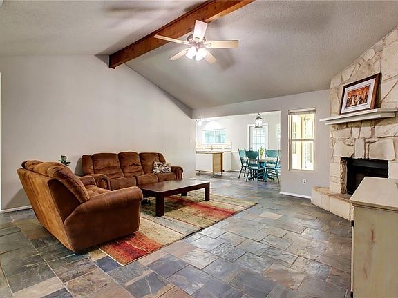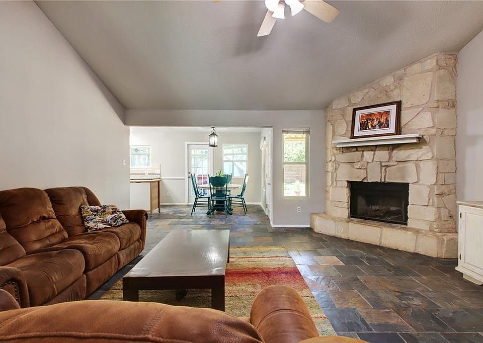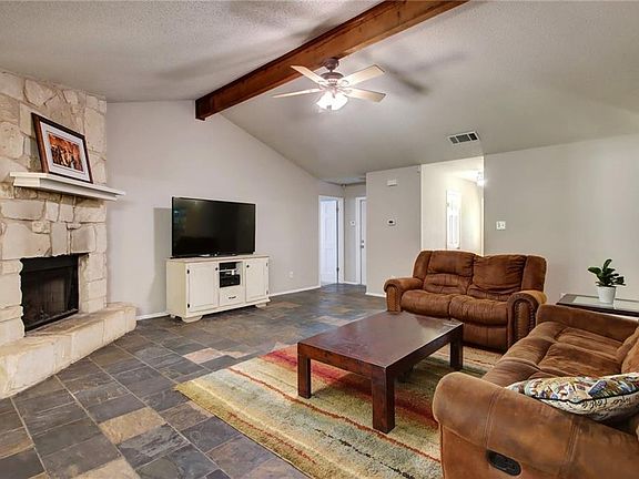 Charming single story home in highly coveted Buttercup Creek! Open floor plan with vaulted beamed ceilings. Slate tile flooring through main living areas with limestone fireplace. Updated kitchen, granite countertops, and tile backsplash. Master suite has dual vanities and double closets. Updated secondary bathroom with custom cabinet, stone vessel sink and tiled shower. Large enclosed sun room off breakfast area perfect for quiet morning coffee or reading. Covered patio and deck leads to a large backyard with mature trees, storage shed, and custom playhouse. Close to major highways, Apple, Lakeline Mall, and light rail station. Application fee $75 per person, Security Deposit $2195, Administration Fee $200, Pet Deposit $350 plus Pet Fee $200 per pet. No smoking property. No utilities included. Available 9/5/2024.