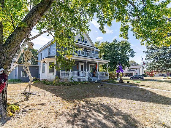 What an amazing home with tons of character. When you walk up to the stained glass front door you see a great porch that you and friends and family can watch the 4th of July parade from as it goes right by. Head into the wide hallway that features large wood pocket doors that add a grand touch to the space. Large doors and high ceilings throughout the home welcome you in. The newly updated kitchen features quartz countertops with a large island. You won't be disappointed in the nice addition off the kitchen that can be a TV room or a play space for the kids. Take 1 of the 2 stairways to the second floor which 1 features a built-in wood bench to read from and look out the window. Outside is a great 3 stall garage and a 10x20 shed to store all you toys. A beautiful corner lot that features a garden and flag pole. Don't miss out on the amazing place that is right across from the park and pool. HURRY this one will not last!