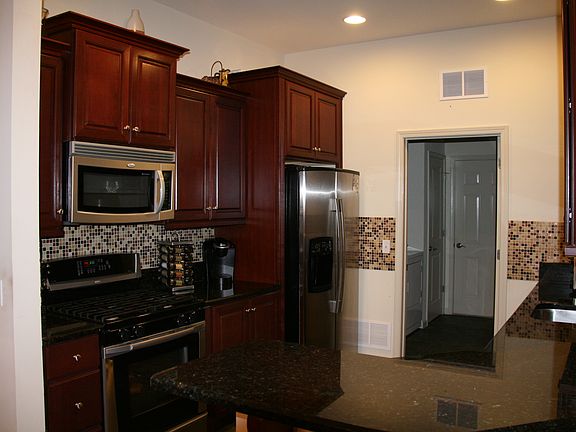 Beautifully designed, spacious and intelligently efficient townhome. This model includes a richly appointed master bedroom and sumptuous whirlpool, as well as an open, flowing kitchen, dining room and living room. First floor ceiling height of 9 feet and hardwood flooring. Kitchen with granite countertops, backsplashes and dark cherry oak cabinets. Two zone, high-efficient heating and cooling with digital, programmable thermostats. Garage with direct entry to home with newly installed commercial all weather Allure flooring.