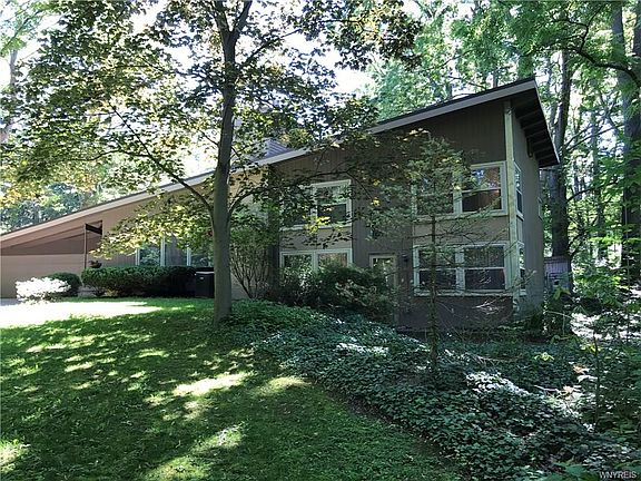 Beautiful contemporary home in desirable village of Youngstown location. Unique and spacious layout with refinished hardwood flooring and vaulted ceilings. Formal living room with fireplace plus dining room with glass doors overlooking the large deck and fenced-in backyard. Great flow for entertaining! The kitchen with skylights opens to both the family room and light-filled dining room. Family room with wet bar, refrigerator and gas stove. Three bedrooms & full bath up a half-level, plus a separate master bedroom area with large walk-in closet, bathroom and fireplace below. Deep 3-car heated garage with add'l garage door to backyard. Lg. garden shed. Hot water heater (2017), bathrooms (2015), newer furnace and windows. Actual sq. ft. is 2,420 ft. Attractive & unique with so much to offer!