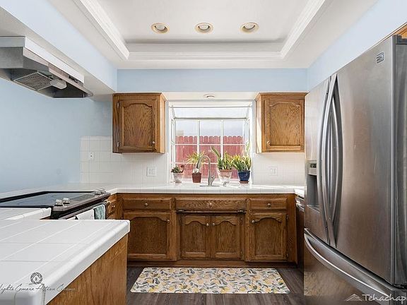 Bright and Charming Ranch home in Tehachapi City! You will want to move right into this quaint neighborhood just a few minutes away from parks and schools. The bay window in the dining area overlooks the spacious front porch. Tons of natural light pour into the kitchen and great room. The beamed vaulted ceilings in the living area give the home a light and airy feel. This home features a open floor plan that will be perfect for entertaining family and friends. The fenced backyard with a garden shed and covered patio is a great space for anyone to enjoy. Three nice sized bedrooms with ceiling fans and a walk in closet in the master. Central heating, air conditioning and the brick fireplace keep this home the perfect temperature. Lots of built in cabinets throughout the large laundry room and two car garage. Call your favorite Realtor and see home before its gone!