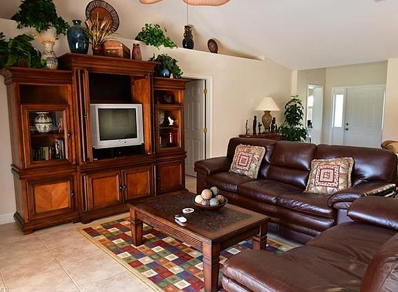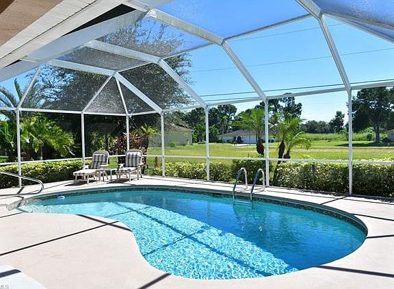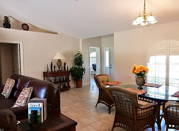 Beautiful Cape Coral location. From the moment you walk into this wonderful 3 bedroom plus a den 2 bath POOL home located within a quick walk to Palmetto Pines Country Club, in a quiet neighborhood, you'll feel right at home. ALL ASSESSMENTS ARE PAID IN FULL!! The split floor plan features a MASTER bedroom suite with a large walk in closet, double sink vanity and step in shower. The kitchen features a breakfast bar and sitting area over looking the pool that can be turned into an eat in kitchen. The living and dining room are the perfect place to entertain. The home features a 2 car garage, tile throughout with carpet in the bedrooms and includes a laundry room. The enclosed lanai and pool area is the perfect place to relax with friends and family. This house has been meticulously maintained with a new HVAC in 2014 and is move in ready. Furniture is negotiable.