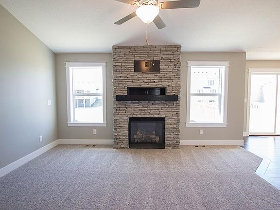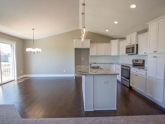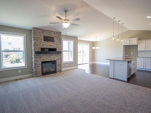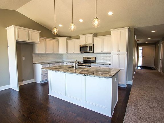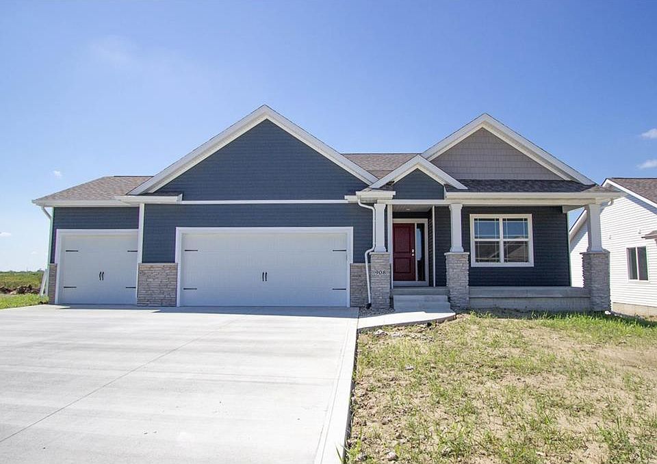 Classic Builders presents the Madison Ranch plan with 4 bedrooms, 3 full bathrooms and 3 car attached garage. Split bedroom plan with two bedrooms in front of house with full bath leading to living room with stone fireplace. Open kitchen with painted cabinets, quartz countertops, tile back splash, center island and hardwood flooring that extends into the dining area with sliders to the deck. Large master suite and master bath featuring double vanity, tile shower and walk-in closet with access to the laundry room. Over 800 sq. ft. finish in the walk out lower level offers a spacious family room with full bath and 4th bedroom. Home is HERS energy certified and comes with a 1 year builder warranty. Pictures similar to Classic Builders Madison Ranch plan.