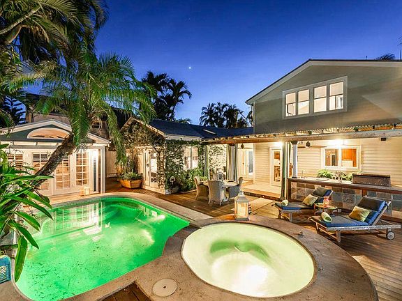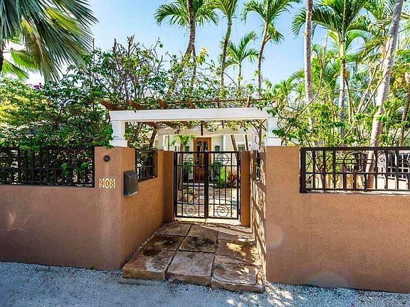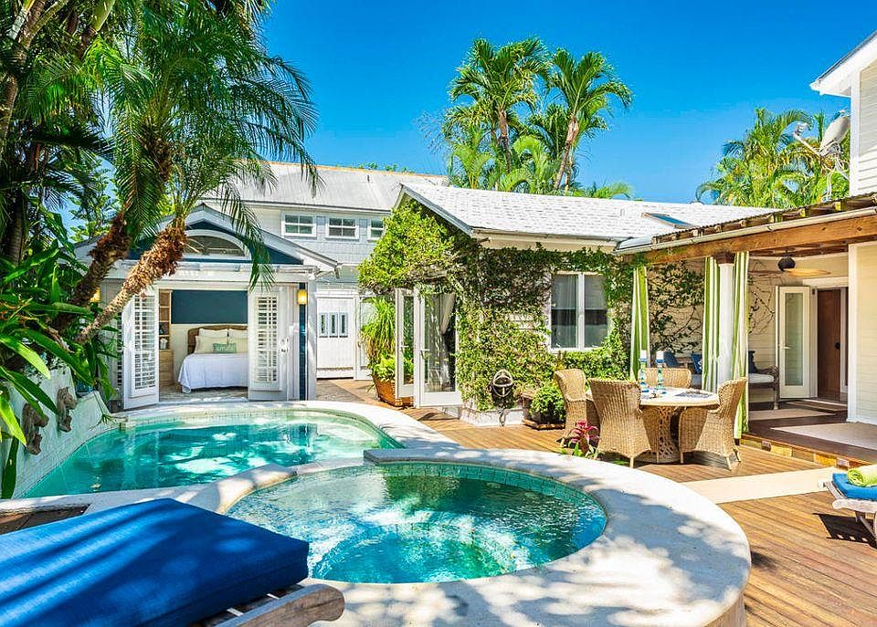 Tropical sophistication meets luxurious living in this four bedroom, five bath home located in the desirable Casa Marina area. Open concept and easy entertaining with an indoor/outdoor floor-plan. Chef's kitchen with custom cabinetry, Sub-Zero refrigerator, wine cooler and refreshment drawers, a Dacor six burner stove along with two dishwashers and a butlers pantry. Vaulted and spacious living areas with an open staircase up to one of the two guest bedrooms en-suite in the main house. First floor spa-like master bedroom and bath. Many covered outside living areas include an outdoor kitchen leading to the gorgeous pool, lounging decks and guest cottage with bath. 2 driveways, impact resistant windows/doors, large laundry room, 2 zone ac, and more. Don't miss this spectacular home utilities included