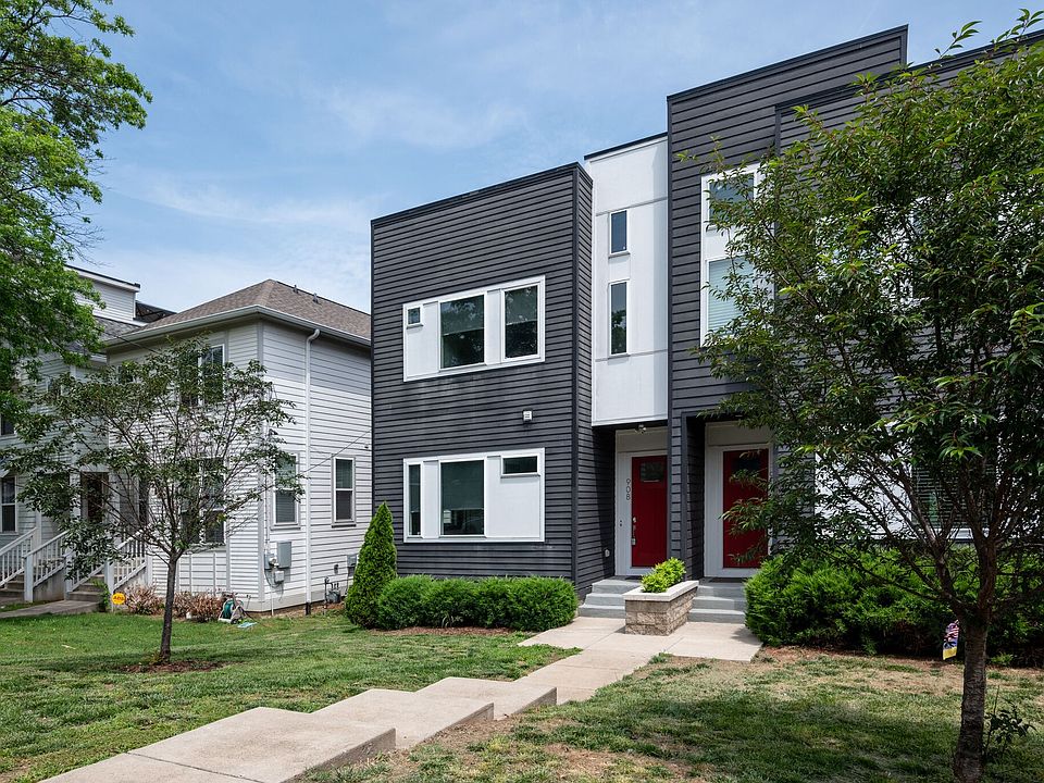 This stunning, contemporary 4 bedroom, 3.1 bath home is convenient to Downtown, Gulch, Music Row & 12S. Simply flawless with high end finishes, designer lighting, quartz countertops, stainless appliance suite, hardwoods, bonus/media room & walk-in closets. The airy layout on main floor is perfect for entertaining & includes a cozy nook or space to set up your bar. Also off the living area is a covered balcony with room for grill & bistro seating with glimpses of downtown. The 1st floor bed & bath is perfect as a tucked away guest suite or private office. Enjoy captivating city views from spacious rooftop terrace which offers covered dining/sitting area. Furnishings to remain if desired offering a turnkey option! Washer, dryer, extra refrigerator in garage stay. Fresh paint in most rooms.