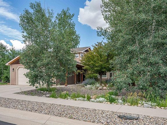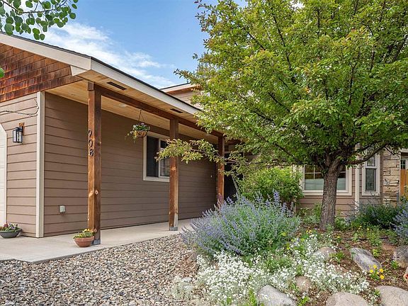 908 Sunny Slope Drive is a true oasis right in the heart of downtown Gunnison. Surrounded by beautiful mature trees and xeriscape landscaping, you feel like you are in the middle of a beautiful forest. This creates such a lovely setting filled with privacy yet you are within walking distance to restaurants, shopping and the rec center. When you enter the home, you will notice the lovely open floor plan with vaulted ceilings, lots of windows and natural light. The kitchen has been upgraded with new stainless appliances and offers lots of counter top space and storage in the beautiful cabinets. Gathering for dinner will be fun with options to sit in the dining area, kitchen peninsula or better yet, outside on the covered patio. The living room is spacious and welcoming offering plenty of room for your family and friends to gather. Just off the kitchen is a large, walk-in pantry offering tons of great storage. The spacious primary suite is also on the main floor with an en-suite bathroom and walk-in closet. The mud room and laundry area sits just off the garage with built in cubbies for each of you and easy access to the half bathroom. Heading upstairs, there are two roomy bedrooms each with their own sink and vanity and a shared, Jack and Jill shower/tub combo and toilet. Each bedroom also has a walk-in closet. The backyard is massive and truly a lovely space to spend time with the birds chirping, trees and beautiful flowers but the best part is it is very low maintenance. The sellers just replaced the boiler for the radiant heat system and painted the living room. The two car garage is a huge bonus. This is a really great home in an ideal location!