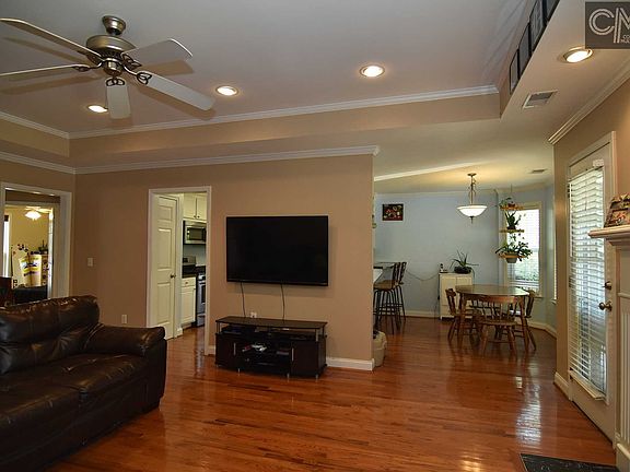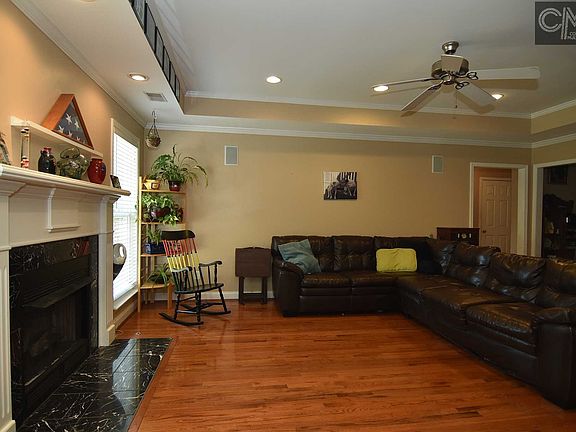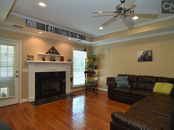 This split floor plan home is conveniently located just minutes from 1-26, 77, or downtown Columbia. Upon entry you will be greeted with gleaming hardwoods which flow thru family room, kitchen, & hallways. Home features gas fireplace as well as gas stove. Retire to your spacious master bedroom with private bath & large walk in closet. Master bath offers double vanities, garden tub & separate shower. Split floor plan offers privacy for master bedroom. Upstairs you will find oversized frog which can be 4th bedroom(w/o closet) or secondary family room. Kitchen offers gas stove, pantry, breakfast bar as well as eat in are. Relax on your covered porch. Gas grill with gas line stays. Fenced backyard. Fridge stay & surround sound