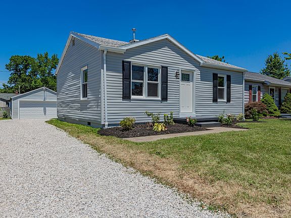Stunningly remodeled, this bright and cheery 2-bedroom, 1-bath home with a large 2.5 car detached garage is move-in ready and waiting for you! From the moment the charming curb appeal greets you, this open-concept sun-drenched floor plan will delight! New waterproof luxury vinyl plank flooring, fresh neutral paint, new recessed lighting along with replacement windows. Natural light fills the great room, which is perfect for entertaining. An open, eat-in kitchen with brand new cabinetry, countertops, a subway tiled backsplash and new stainless appliances. You will have everything you need to create delicious meals for family and friends. New carpet invites you into both bedrooms, with easy access to the completely updated bath, featuring new flooring, new vanity, new mirror, new lighting and a tub with tiled surround. Outside is a sprawling back yard with plenty of space for outdoor dining and recreation, along with a 2.5-car detached garage for parking and storage. It's time to pack up your belongings, you have found the perfect place to call home! Per seller: new HVAC in 2022.
