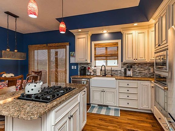 Open concept ranch with 5 bedrooms, 3 full bathrooms, and 3 stall garage. The main floor has a great set up kitchen with center island, upgraded appliances and eating area with glass doors to deck and spacious backyard. Also 3 bedrooms on the main level, one being the master bedroom suite which is terrific and has a walk-in closet and master bath with double sink vanity. Do not miss the convenient main floor laundry. The exciting lower level family room includes a large wet bar and gas fireplace. Also in the lower 2 more bedrooms and another full bathroom. Front entry with stamped concrete walk and covered porch.