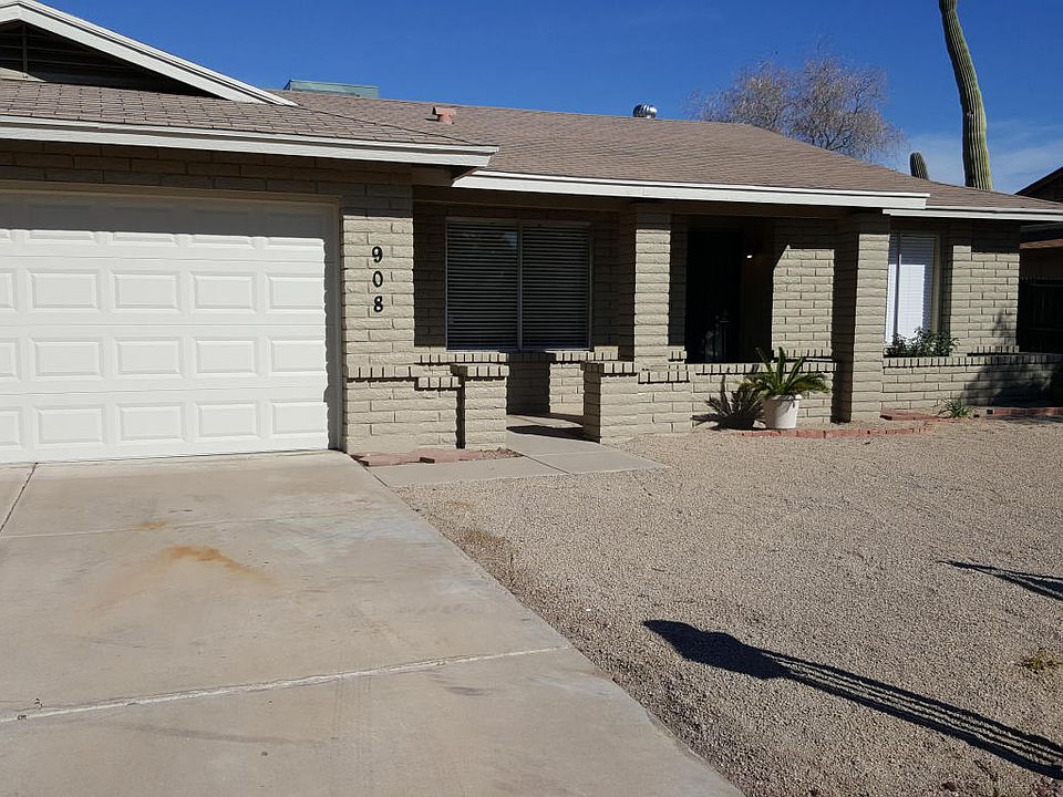 REDUCED PRICE. Remodeled block 3 bedroom,1.75 bath and 2 car garage home near the 101,202 and 60 with a Chandler address. New interior and exterior paint, tile, carpet, granite counter tops, pool surface, etc. Expanded patio area that adjoins the Arizona Room which has dual pane windows and doors. Concrete pad for RV parking on West side of the house. Check out the pictures on the Photos Tab and call today to schedule a showing.