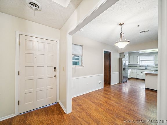 Welcome to this charming three bedroom, two bath home located in the heart of Broken Arrow! This adorable home has an enclosed front porch ideal for reading and drinking your morning coffee. The large living room features a cozy fireplace with vaulted beamed ceilings that opens into the ideal cooks kitchen complete with double ovens ideal for cooking Holiday meals. Kitchen has new plumbing in slab as well as new flooring. Garage door has new rails and spring as well as brand new state of the art smart security system and cameras. The backyard is ideal for entertaining with a fantastic covered porch and comes complete with raised gardens ready for you to plant all of your favorite vegetables and flowers!