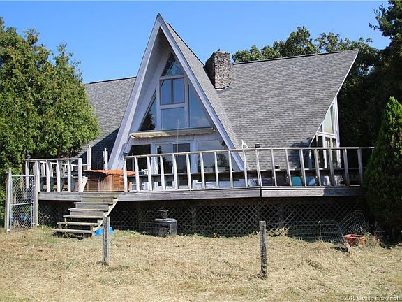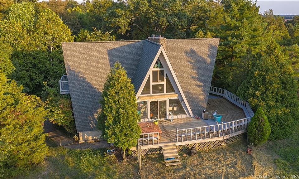 A-Frame home on 16.5+ Acres in Georgetown, Indiana. This large property is ready for your personal touch but all the basics are there! Kitchen has granite counter tops and stainless appliances. Kitchen and Dining area open to the 2 story Living room that has a dramatic stack stone Fireplace. Views of the property from almost every room. 2 bedrooms on the main floor, master bedroom is on the 2nd floor. The land is beautiful but needs some maintenance. There is a gazebo and fish pond but they have not been kept up. Dimensional shingled roof, newer water heater, duel heat furnace system (forced air with LP gas or wood burning furnace) TWO SEPARATE DEEDED PARCELS. Main property is 14.45 Acres, Second parcel WITH IT'S OWN ROAD FRONTAGE is 2.07 Acres. Square footage is approximate, buyers agent to verify and the second parcels usability regarding resale/building. Sellers are ready to sell!