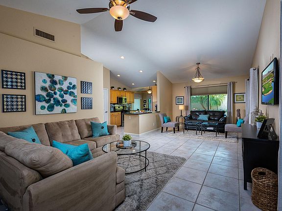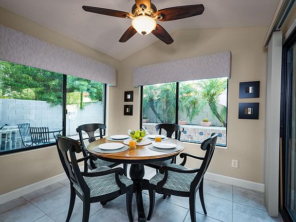 What a great location for a great home! Tastefully decorated with comfortable seating in the living area, and plush bedding in all 3 bedrooms. The floor plan is spacious so you and your guests will not be over crowded. There is cable provided for the living room and the TV in the master bedroom. Wireless internet is also available in the home. This vacation rental would suit families, golfers, or business travelers alike. All bedding was recently updated with new mattresses and linens. You can guarantee a good night s sleep here!! The master bedroom has a king bed with TV, and also has access to the backyard through the sliding glass doors. The master bathroom has a shower, dual sinks, and makeup station. The other 2 bedrooms both have queen beds with dressers, nightstands, and closet space for your travel needs. The second bathroom has tub/shower combo. All towels and linens are provided, including towels for the pool. There are several delicious restaurants nearby, but sometimes you just want to eat something homemade! The kitchen has place settings for 12, with beverage and wine glassware. Small appliances such as a toaster, coffee maker (Keurig and standard), and a Ninja are at your fingertips. After enjoying a meal with your guests, you can relax on the couch and pop in your favorite movie on the DVD player, or catch a game on the TV. The backyard has a swimming pool that can be heated during the cooler months for an extra daily charge. There are 2 sitting areas among the palms that line the back fence for privacy. It's a serene spot to enjoy your morning cup of coffee, evening cup of tea, or take a late night dip in the pool to relax. Captain's Retreat will be first on your list to stay when you return to Arizona! **Pool heat - This does not come included, you are welcome to request pool heat & a cost-quote for your selected stay. No guarantee electric pool heater will get up to temperature**