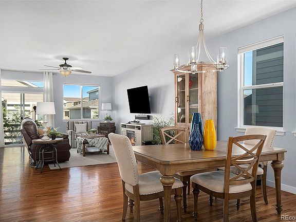 Welcome to this meticulously cared-for Taylor Morrison Ranch nestled in beautiful Whisper Creek! Step through the front door to an inviting open concept floor plan with red oak hardwood floors seamlessly flowing throughout the main level. The kitchen boasts new backsplash and beautiful quartz counters ready for all your entertaining needs. The recent updates don't stop there and will tastefully guide you throughout the entire home. Retreat to the primary suite, boasting an updated ensuite bath and large walk-in closet for ultimate comfort and privacy. Need a space to work from home? The office provides a quiet atmosphere supporting a focused work schedule. The finished basement offers ample storage and additional living space complete with a large kitchenette, additional bedroom and full bath, ideal for hosting guests or creating a cozy retreat. This home is a true gem, featuring owned solar panels for eco-friendly living and a beautifully landscaped backyard with a stamped concrete patio perfect for entertaining. The garage is equipped with extra outlets including a 220, catering to your electric vehicle or workshop needs. The community features trails for outdoor enthusiasts, a refreshing pool for hot summer days, tennis courts for friendly competition, a park and clubhouse for gatherings with neighbors and friends. Conveniently located near shopping and Hwy 93, enjoy easy access to both Boulder and Golden, making commuting a breeze. Other home features include a newer High Efficiency Furnace, 5-Year Roof Cert, New Interior Paint, Central Vacuum on both levels, Solar Tubes for added natural light, and so much more! Don't miss your chance to own this impeccable home in Whisper Creek, where every detail has been thoughtfully curated for modern living at its finest. Schedule your showing today and make this your forever home!