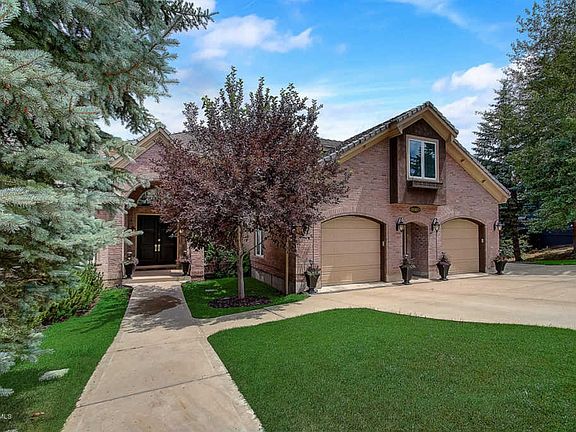 This stunning home is located on the 9th tee of the award-winning Jeremy Ranch Golf Course with views of the course, a stream, and pond set under mountain views. This spacious home is made for entertaining. The open concept main level consists of a light-filled living room with a floor-to-ceiling fireplace and pool table. The adjacent chef's kitchen and eat-in dining area opens to a deck with beautiful golf-course views and stair access to the back yard. The large kitchen features a 4-burner gas stove, double-ovens and a large island for prepping gourmet dinners and entertaining friends and family. A formal dining room, an executive office, and two powder baths finish the main level. Upstairs has the master suite, private deck and a secluded guest suite. Downstairs like a having another house - full kitchen, w/d hookups, music room, bunk/game room, three additional bedrooms and two baths. The family room opens to a back patio with a hot tub and direct access to the mature yard.
