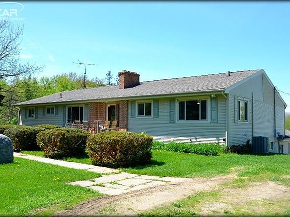 Wow! Are you looking for that little slice of Northern Michigan - But not 3 hours away? Look no further as this fantastic 10 acre parcel in Otisville 1 mile west of M-15! Perched up on small hill, surround by mature fruit trees, pines, and all over-looking a multi-acre pond! This 2500 sq. ft. ranch has it all; Up to 4 spacious bedrooms, 2 full bathrooms, 2 half baths, main floor laundry, eat in kitchen, and full walk out basement. Your home has a monster master walk in closet, 24x24 vaulted great room overlooking your property, 2 natural fireplace, 2nd kitchen, rec room and a heated 20 x 36 attached garage with 12 x 20 workshop attached. Don't miss this one of a kind home. Bring your outdoors gear; hunt - fish - garden - boat and more!