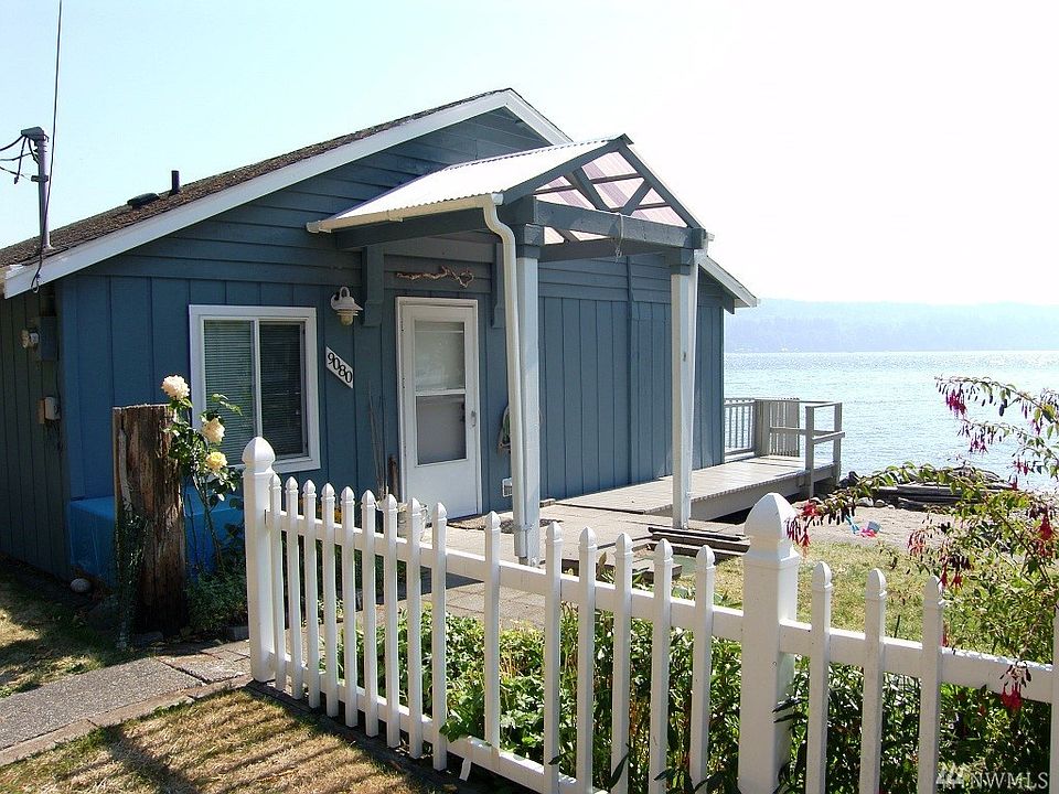 Welcome to the beach! Serenity awaits at this sweet waterfront home with 107 feet of waterfront and owned tidelands. Relax on your large wrap around deck and enjoy the marine life and passing boats. Inside you'll find spectacular views from every room, tile floors, custom trim and a nice size kitchen with all appliances included. Large windows to take in the views, 2 bedrooms, 1 full bath and spacious living/dining room area. All tucked away in a quiet little neighborhood in desirable area.