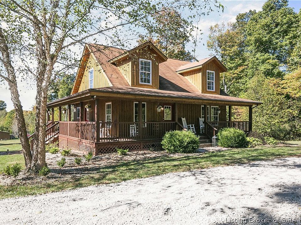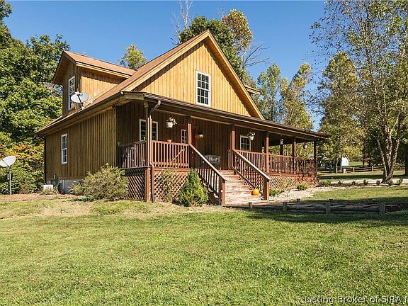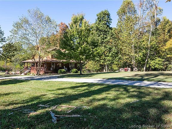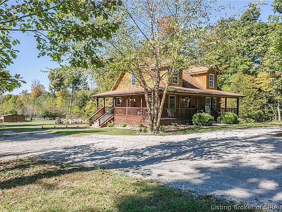 huge wrap around covered front porch and enjoy the serenity. Newer home with an open floor plan in the living area nestled on 3.4+ acres of tranquility. And you really are not far from either Floyd’s Knobs or Sellersburg. This 3 bedroom, 2 bathroom home has been lovingly maintained & upgraded with high grade building products. The cabinets are satin maple & the laminate is above builder grade in a beautiful warm color. Also in the master is a wall of closets with HGTV FAVORITE custom made barn doors for the closets. And for a bonus, there is a Bonus room on the 2nd floor. There are many updates in this energy efficient all electric home, come check them out. The exterior includes a new semi-circle drive & decorative fencing in front of the home. In the back is a 12x16 shed & a 20x40 barn for animals with a fence & a chicken coop. Country life at its best. If the school system(s) are important please verify. Square footage & room size are approximate, please verify if important. Signed MLS data sheet along with pre-approval letter must be submitted with any offer.