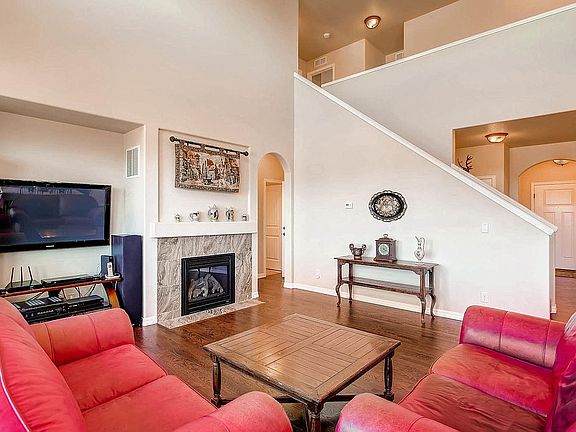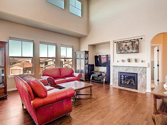 DRAMATIC Two- story home on PREMIUM Cordera lot w/ stunning Pikes Peak & Mountain Views situated w/ no homes behind as it backs to the cul-de-sac of street below. Award winning Jackson model has an open floor plan into the kitchen, living room and dining area. In the kitchen you will find upgraded cabinets, granite countertops, tiled backsplash, Whirlpool stainless steel appliances inlcuding double oven w/ gas stove & a large island, perfect for entertaining. Adjacent to the kitchen is the “huddle” room, w/ flex space this can be used as a play/toy room or homework area or many other possibilities for this bonus room. Kitchen opens up into the dining area w/ walk-out to deck w/ mountain views, & opens to a great room w/ gas fireplace & two stories of windows w/ lots of natural light & views, & the hardwood floors extend from the entry into the kitchen, living room & down the hallway. An office & full bathroom complete the main level. The upper level is designed for convenience w/ Master bedroom, 3 additional bedrooms & the laundry room. The large master bedroom features a wonderful five piece bath w/h dual vanities, walk-in shower and soaking tub plus his & her closets a private master bedroom balcony, perfect to enjoy a morning coffee or evening cocktail. Home features a walk-out basement, completed front & rear landscaping & fence installed. Come enjoy the Cordera Lifestyle - Master Planned Community, D20 schools, extensive trails, cul-de-sac streets, award-winning Story Book Parks, Community Center w/ pool, gym, child care & YMCA classes!