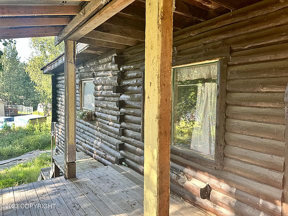 Beautiful rustic Alaskan log cabin on a hill! Featuring two rock fireplaces & nice deck perched on top of the neighborhood cheap starter house with just a little sweat equity. Recent upgrades include new gas griddle top stove, well pump, natural gas pushed up to property, Electric, & septic. Fenced area for dog, goats, or Chickens. Perfect opportunity to own piece of land on the Redington trail!