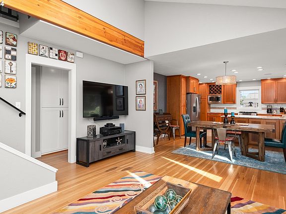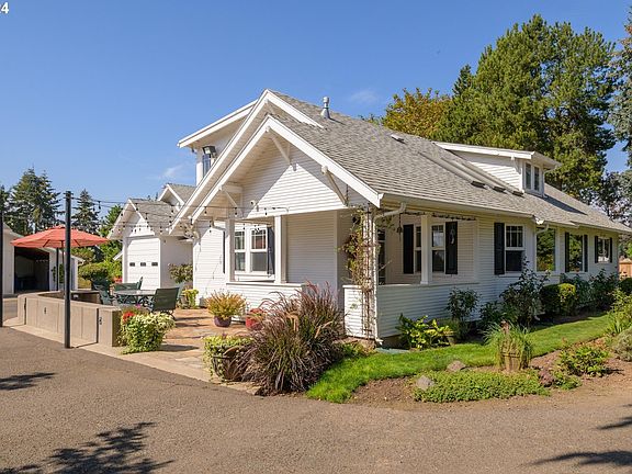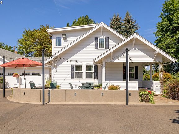 Nestled on 2.84 acres of tranquil countryside, this beautifully renovated home seamlessly blends modern comfort with peaceful seclusion. The upstairs primary suite offers breathtaking sunrise views and features a spa-like en suite bathroom. Hardwood floors extend throughout the open-concept living space, which leads to a gourmet kitchen perfect for culinary enthusiasts. A finished patio provides the ideal space for gatherings or relaxing as the sun sets. The property is surrounded by an abundance of fruit trees and hazelnut trees, creating natural privacy. A 3-car attached garage includes an RV bay, while an additional shop with storage bays on each side offers plenty of space for hobbies and storage. Enjoy the garden area and multiple outbuildings, perfect for country living. This is a must-see Coburg retreat!