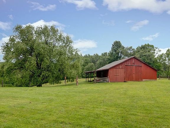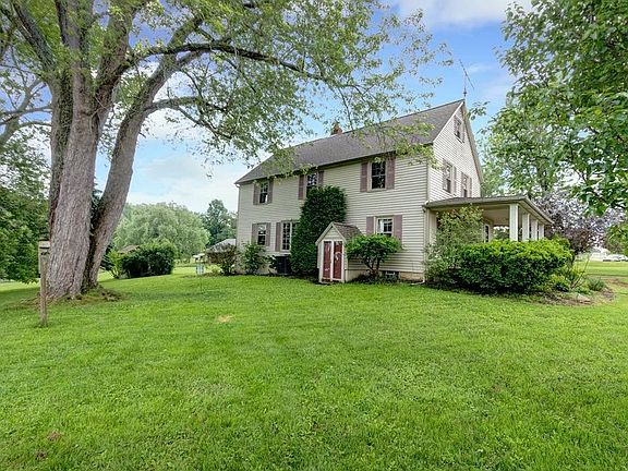 You can feel the love in this home! Charming century farmhouse on over 6 acres has character and warmth yet offers a beautiful updated (2016) kitchen and remodeled first floor bath. There are wood floors throughout the home, and every window offers a pretty country scene. The property is gorgeous and offers rolling meadows, flowering shrubs, mature trees, and is truly one of the loveliest pieces of land you'll ever see. The essential big red barn has electric and water, it could fit several stalls, and you could fence in acres of pastures if you want to bring your ponies home! Sit out on the covered front porch and watch the horses at the farm across the street or sip a tall lemonade on the side deck for more bucolic views of your own homestead. Cook up a big meal in your gourmet kitchen with granite counters, double ovens, pantry, and newer (2016) appliances. At the end of the day head upstairs to any of the 4 spacious bedrooms and rest easy, stay cool because there's central A/C. The office could also be a TV room, play room, or craft room, and it leads to stairs for the tall floored in attic. A stone walled room in the basement makes a cool place to play pool or darts, and has doors that walk up 4 steps to the yard. Don't forget the authentic 4 seater outhouse!! Roof and windows are approximately 10 years old