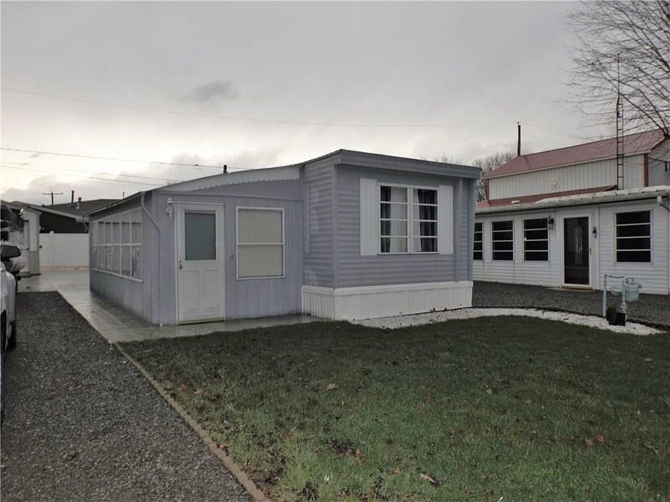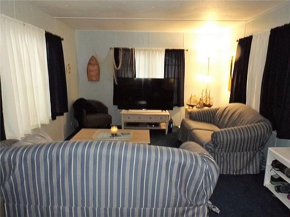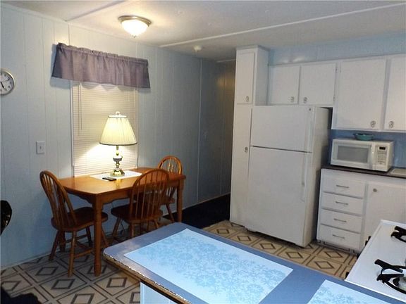 Two bed, one bath mobile on deeded land in Turkeyfoot has many updates, including central air, water softner and tankless hot water heater. Large, enclosed porch has its own air conditioning unit, so that you can enjoy it even on the warmest of days. Other outdoor improvements include a 10' x 12' golf cart garage wired for Cablevision, with a TV and bar. Newer stamped concrete, makes for low maintenance living. Don't miss out on your chance to be at the Lake this summer.