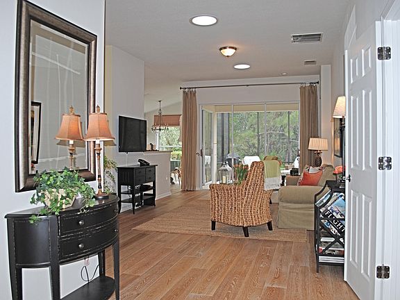 Follow the pavered walk past the tropical landscape to your new Florida home in Sweetwater. This impeccably maintained home will welcome you with its gleaming hardwood floors and neutral color palette. The split bedroom floorplan and plantation shutters provide privacy for both guest and homeowner. The open floorplan provides views straight though to the screened lanai and preserve beyond. Stainless steel appliances and granite countertops are found in the kitchen which conveniently lies between the formal dining room and the breakfast room. Enjoy the active 55 plus lifestyle offered by Sweetwater at Summerland Hall, an amenity center w/two gathering rooms, ballroom, catering kitchen, billiards room, fitness center, exercise room, business center, indoor lap pool and Jacuzzi, and more.