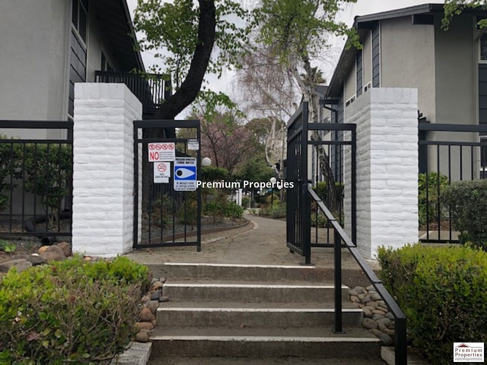 Upper level 2 bdrm/1 bath, 1039 sqft. end unit San Ramon condo in The Gardens Community is available NOW! 10;The entry opens to an open concept living space- living room, dining area punctuated by white upper cabinetry and an inviting kitchen with bi-level counters for food prep and bar seating eating area. The kitchen features solid surfaced counter tops, stainless steel double sink with goose-necked pullout faucet, ample white cabinetry and appliance package (refrigerator, electric stove/oven, dishwasher and microwave). A large walk-in pantry with built-in shelves is conveniently tucked near the kitchen area. A nice balcony just off to the dining area overlooks the swimming pool, community grounds, and the outdoors. The hallway is lined on one wall by a large linen closet with built-in shelves and sliding double doors. The bathroom has a shower over tub combo with solid surround and a single vanity with picture framed mirror and lower cabinetry. The two (2) ample sized bedrooms feature large windows and over-sized wardrobe closets with mirrored doors. 10;The Gardens Community boasts a swimming pool/spa, clubhouse, community laundry, playground, and gated entry. Water, garbage and HOA fees included in rent. Pet negotiable with Owner's approval and additional security deposit. One assigned carport. No smoking.