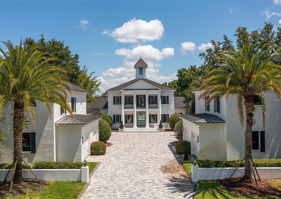 One of the finest offerings on The Butler Chain of Lakes! A true beauty on 2+ privately gated, magnificent grounds with awesome views over Pocket Lake. Updated with custom features too numerous to mention. This fine property was carefully designed and features a new roof. Two separate carriage houses each with 2-car garages (one has a convertible gym) have upper living areas both with a bedroom, full bath, kitchenette and living area - pleasing to care-taker, extended guest, home offices or whatever the need. - Spacious master suite on lower level with spacious bathroom and walk-in closet with access to the office - also, formal LR, DR, FR and designer kitchen which includes another large family eating area with superb views of the pool and lake. Complete upper level SUITES with common loft area, opening to balcony. One bedroom is currently a golf simulator room. Just a few of the fine features include a RO water system - over-sized pool with low maintenance salt water system, summer Kitchen with 1/2 bath and shower, cabana with fireplace, sitting area with fire pit, and of course the covered lanai and boat dock with boat and jet ski lifts.