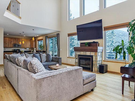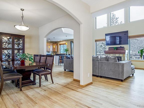 This beautiful mountain house is in impeccable condition and ready for you to call home! Nestled on an acre in the pines, the home has fantastic views of the dramatic mountain landscape across the valley, including unique rock outcroppings and gold aspen trees in the fall. The great room's open concept layout allows for easy entertaining. Host dinner in the dining room, or dine al fresco on the new composite decks where you can enjoy the mountain vistas. The high ceilings provide a grand feel to the space, and make note of the all new Anderson windows that frame the views! The kitchen boasts granite counters, island, pantry and stainless steel appliances, including a brand new fridge and gas range for the chef in the family. The main level also includes a home office, which could also serve as a bedroom with a full bath conveniently located next to this space. Upstairs are two guest rooms, another full bath and the master bedroom. Open the custom barn door and you'll find the remodeled ensuite bath with a large tile shower and Japanese soaking tub with bench seat. The oversized walk in closet has lots of storage! The lower level has been completely remodeled and offers endless options. Serve your friends a cool drink at the custom full bar, play a game of pool or step outside and enjoy the twinkling night stars from the hot tub. The lower level can accommodate another bedroom with a simple addition of a wall, and the current bath has space and plumbing to add a shower. Lovingly cared for by the owners, you'll be hard pressed to find a scuff on the walls or scratch on the gleaming hardwood floors. Conveniently located between Conifer and Evergreen, you'll have access to endless outdoor activities at a number of Jeffco Open Space Parks and Staunton State Park. It's time to make your dream of mountain living a reality!