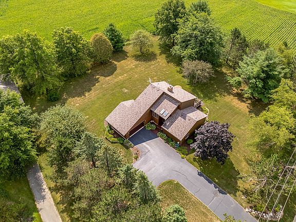 Gorgeous custom built 2 story home on almost 2 acres of land with pretty views from every window. Spacious entryway with skylights. 2 story great room with floor to ceiling stone fireplace. Beautiful updated kitchen with hickory cabinets, quartz countertops, slate backsplash, breakfast bar with pendant lights, new 6 burner SS gas range. Loads of mission style cabinets w/dovetail drawers, large farmstyle sink, rubbed bronze fixtures. 1st floor laundry. Sliders out to large 2 tired deck, great place to relax. 2 family size bedrooms on main level, lovely MBR upstairs with private deck, full bathroom and a loft room overlooking the living room. Finished lower level w/bar area, pool table (stays!), workout area. Updated 1st floor bath, 2.5 car attached garage. 36x40 outbuilding with electric, great place for all the toys. Roof approx 4 yrs, C/A & GFA approx 10 yrs, fridge & DW 10 yrs, stove new! washer 5 yrs, driver 8 yrs, water softener 6 yrs, water heater 1 yr. Back of the property goes into the corn filed, there are stakes. This quality built one owner home has been extremely well cared for and beautifully landscaped. Wonderful country living!