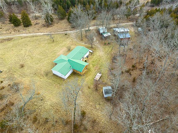 This beautifully renovated 5 bed 2 bath manufactured home is located on 19.62 +/- ACRES! Multiple lots, outbuildings, a pond and a scenic creek runs alongside the entrance road. It is so incredibly peaceful and quiet; you will never want to leave. The home features a metal roof and a split bedroom floorplan. Covered back and front porch with a view you must see in person to appreciate. Seller has made some updates like fresh paint, flooring, interior doors, cabinets, new appliances, toilets, shower/tubs, baseboards and plumbing/electrical updates. Seller has replaced the septic system, it's new and sized for 5 bedrooms. Main floor laundry and a split bedroom floorplan. Woodburning fireplace in living room to enjoy. There are 4 other outbuildings to consider, 2 appear to be large chicken coops, one is a small shed and the last is large barn. I cannot overstate what a charming location this is, so private! Lots of land to roam, gently rolling in the back with an open area in the front.