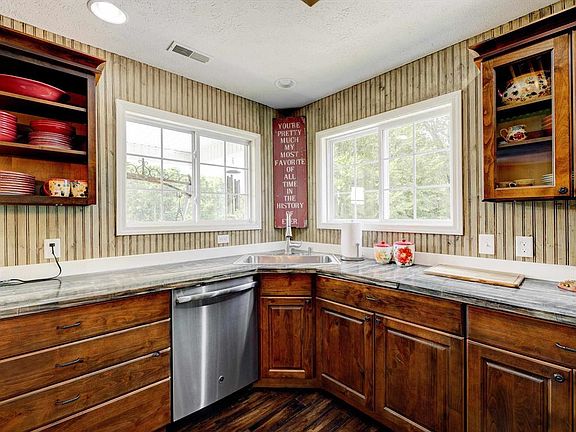 Almost new home with 6.3 acres. Very unique country property in east county by Kingfisher Lake. Property was built in 2017. Ranch style 3 bedroom, 2 bath home with large 2 car attached. Turnkey home fully furnished. Just bring your clothes and a fishing pole and you are all set to relax. Property is very secluded, sitting at the end of Boling Heights Lane. Walk down the trail to the lake and bring your fishing poles. Has natural gas line to the property. Natural gas fireplace is built into the entertainment, and it stays with the property. House can be bought including all the furnishings or negotiate price without furnishings. All lawn equipment is also for sale. This would be a great property for someone moving in from out of state, and not have to pay moving expenses. Popular old barn included. Large, covered bar b que pit for entertaining lots of guests. R 31 Insulation, concrete drive, engineered hardwood floors, ceiling fans, walk in panty, and more.