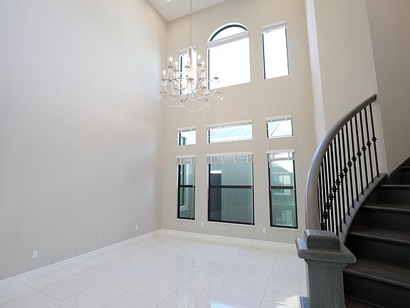 At this stunning estate's entrance, grand double doors open to reveal the elegant foyer, striking high volume ceilings, and picturesque staircase. Adorned with magnificent chandeliers and custom accents throughout the residence, this estate is brimming with radiant brightness and refined elegance.