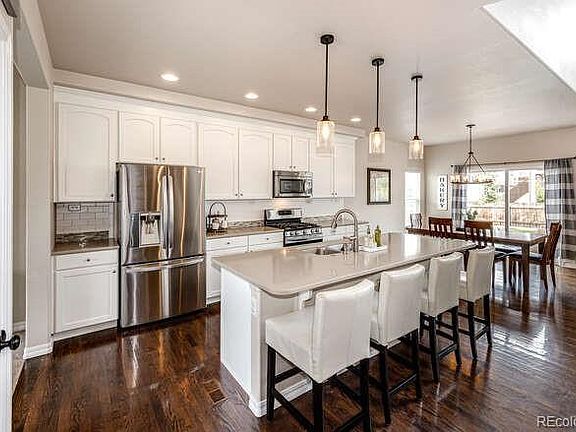 Exceptional Cordera 2 Story, move in ready! This stunning floor plan offers it all, Open floor plan with huge island with plenty of seating, All stainless appliances included, Quartz countertops, Gas cook top, Lighting upgrades, Tile backsplash and accents, Roomy breakfast nook large enough to hold dining table, Gorgeous hardwoods, Bonus room off kitchen with lots of options for dining, play room, hobbies, homework or whatever fits your needs, 2 story great room with built in cabinets and cozy fireplace, Main floor office, Full main floor bathroom, Spacious stamped and stained patio, Fully fenced and landscaped, Cul-de sac lot, Trail head steps away from front door, 3 car tandem garage deep enough to hold truck or large SUV, 4 Upper bedrooms, Newer upper carpet, Neutral paint tones, Spacious upper Primary Bedroom with Private Balcony, Tile baths and accents throughout, Fully finished basement with Wet Bar, Media Room, Wine Cooler, Built in cabinets, 5th bedroom in Basement with Full Bath, Great Storage area, Perfect floorplan for All, Fantastic Cul-de-sac location with Mountain View, Trail Access, Parks and Playgrounds nearby, Community pool, Pre-Inspected for your buyers' piece of mind, Excellent condition, Welcome Home!