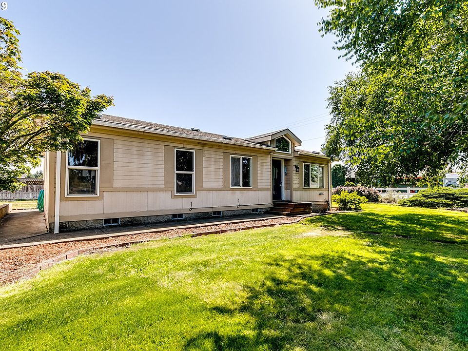 Convenient close in Country Living!Relax & enjoy peaceful days on 1.01 acres with this 2-bedroom/2-bath manufactured home in Alvadore.Features include a traditional living room with laminate floors,Vaulted ceilings,master suite with separate shower & whirlpool tub,Updated kitchen with breakfast bar,SS appliances,pantry,laundry/mudroom.Fenced manicured yard,Gazebo,Large Garden.Spacious 2car garage with 220.Barn/Shop w 1stall RV Parking!