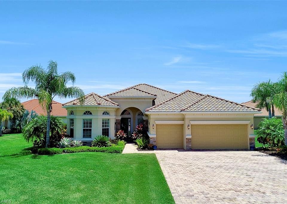 WOW! SITUATED ON AN OVERSIZED LOT with SE water view exposure! This popular "Dartmouth" model has 3 bedrooms plus an office with a built-in murphy bed, shelves, storage and desk, 3 full baths, 3 car extended garage and an oversized lanai and pool . The Gourmet kitchen boasts upgraded white cabinets, granite counter tops, Kitchen Aid stainless steel appliances, and a wine bar. The Open Floor Great Room has 12' coffered ceilings, surround system, disappearing sliding glass doors that lead to the extended lanai complete with outdoor kitchen, custom bar with TV, huge custom salt water pool and tons of room for sunbathing. Other upgrades include a fireplace, diagonal tile in great room, and bathrooms, crown molding throughout, dramatic tray ceilings, upgraded window coverings, closet systems in master bedroom, and much more. A "must see" to appreciate the finishing touches! The Quarry is a gated lakefront community offering 600 acres of lakes for boating and fishing. Additional amenities include Tennis, Pickle ball, Bocce Ball, a Tiki Bar, Restaurants, Pool-side food/drink Service, Fitness Center and an optional 18 hole PGA Level Hurdzan Frye Golf Course.