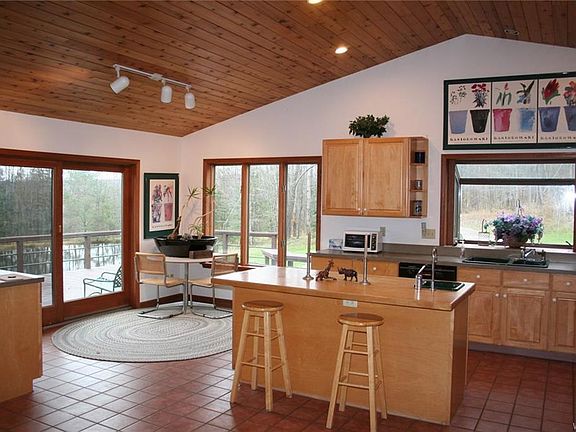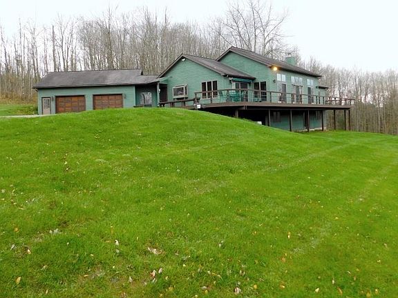 Incredible views and setting! A stunning design only begins to describe this estate. Very private setting with floor to ceiling windows throughout, overlooking incredible views and 2 acre stocked pond. The open floor plan with soaring ceilings and skylights are accented with a gas fireplace! The master bedroom has its own glamour bath with separate shower! Multi-zone radiant heated floors, six panel doors, unbelievable closet space. Huge game room / family room with gas fireplace, separate laundry room and so much more. Huge wraparound deck. Not far from Kissing Bridge. Don't miss this incredible property!