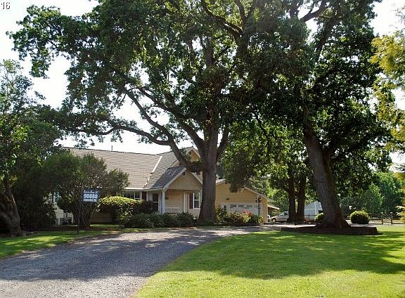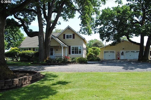 Fabulous 4 bedroom, 2 bath farmhouse set amongst the majestic Oaks on .84 of an acre. This immaculately maintained home boasts, hardwood, floors throughout, kitchen w/granite counter tops, slide-out drawers, eating area, large laundry room w/sink & pantry, upstairs master bedroom w/bath, light & bright throughout. Covered patio leads out to beautifully maintained park-like grounds, fire pit, w/4 car detached garage & shop area.